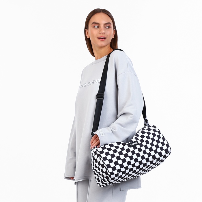 Сумка спортивная на молнии, регулируемый ремень, маленький размер, цвет белый/чёрный — Характеристики