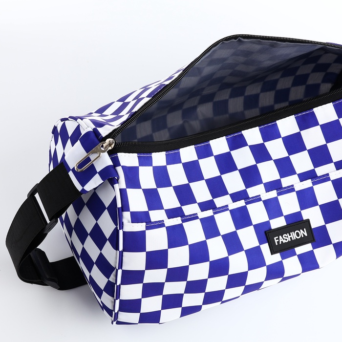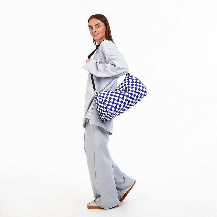 Сумка спортивная на молнии, регулируемый ремень, маленький размер, цвет белый/синий — Характеристики