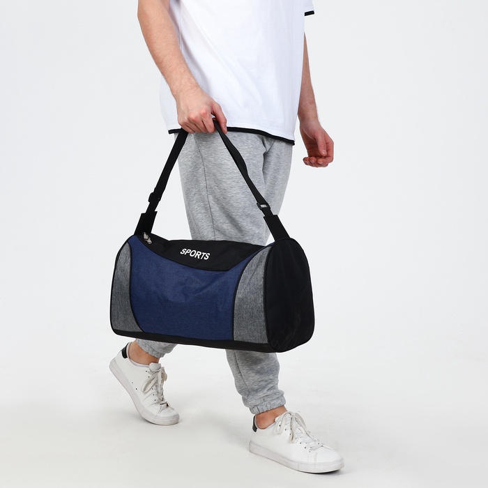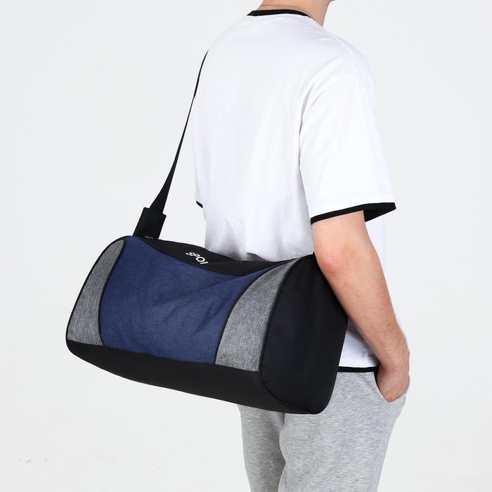 Сумка спортивная на молнии, регулируемый ремень, средний размер, цвет чёрный/синий — Характеристики