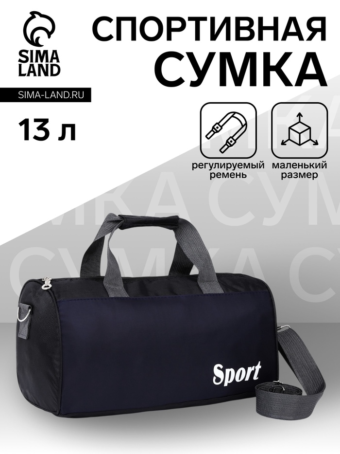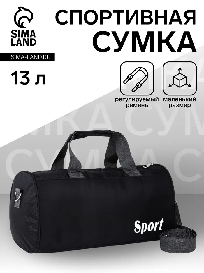 Сумка спортивная на молнии, с длинным ремнём, маленький размер, чёрная — Характеристики