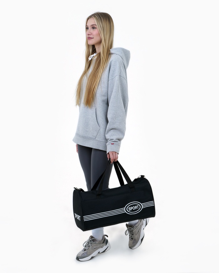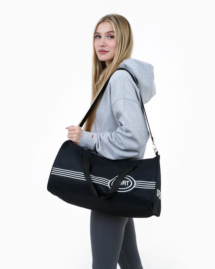 Сумка спортивная на молнии, с длинным ремнём, средний размер, чёрная — Характеристики
