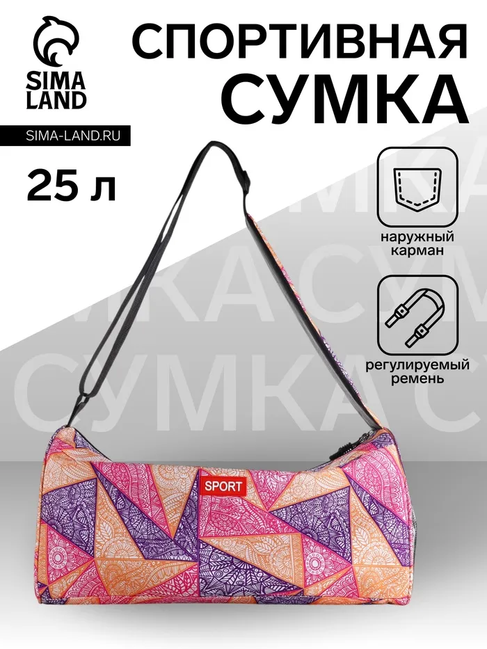 Сумка спортивная на молнии TEXTURA, регулируемый ремень, средний размер, цвет фиолетовый — Характеристики