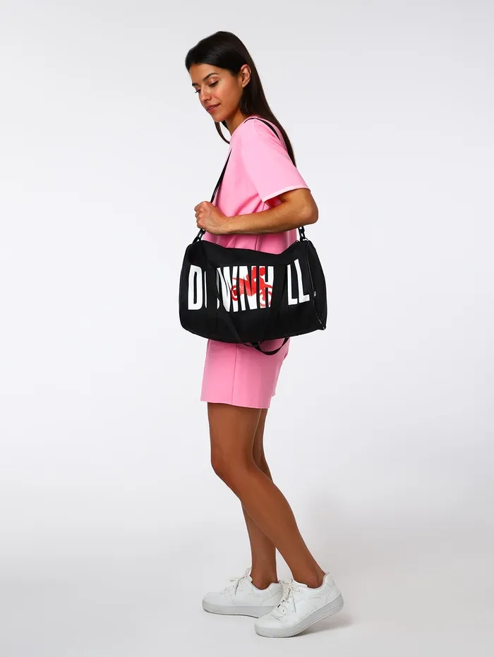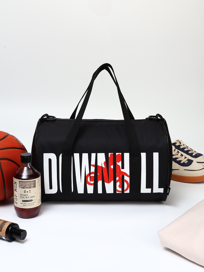 Сумка спортивная на молнии TEXTURA, с подкладкой, длинный ремень, маленький размер, с принтом, чёрная