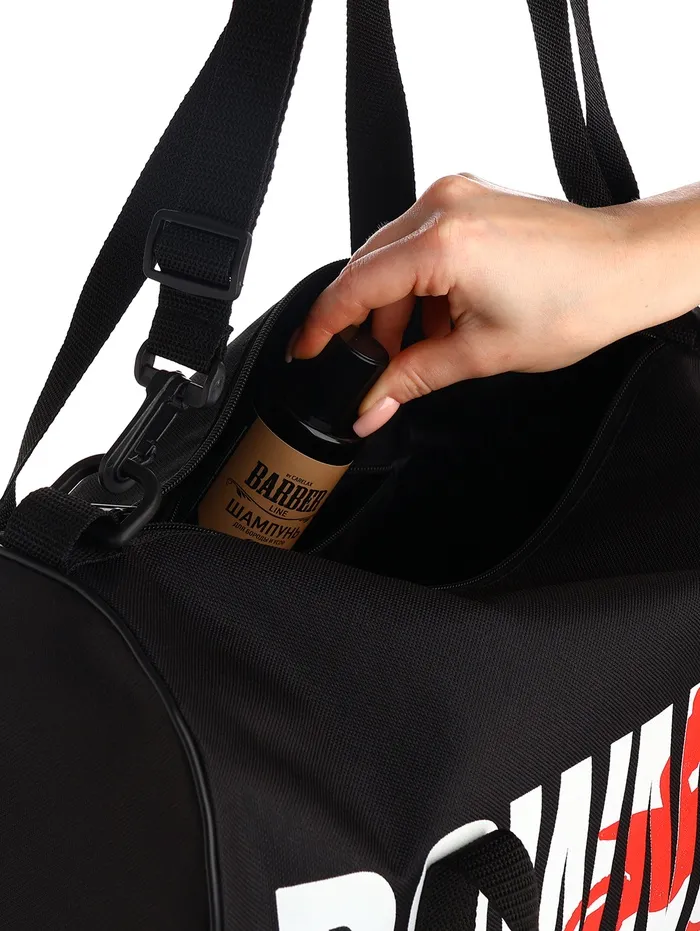 Сумка спортивная на молнии TEXTURA, с подкладкой, длинный ремень, маленький размер, с принтом, чёрная — Характеристики