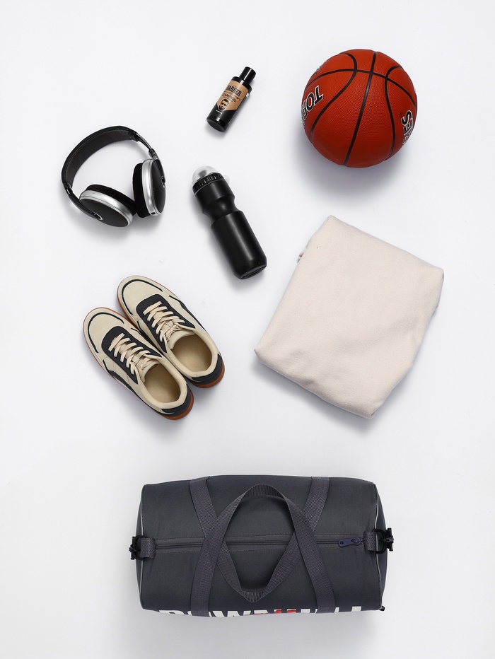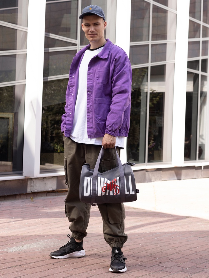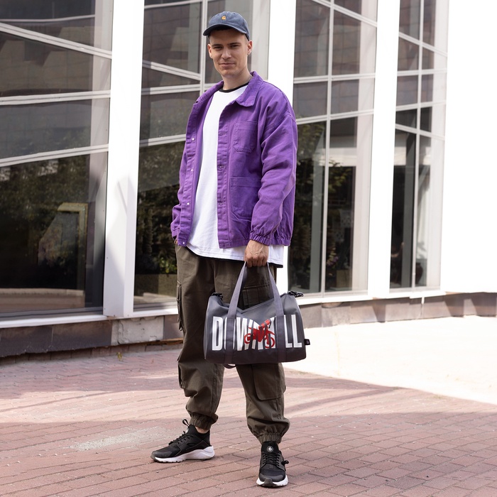 Сумка спортивная на молнии TEXTURA, с подкладкой, длинный ремень, маленький размер, с принтом, серая/белая — Характеристики