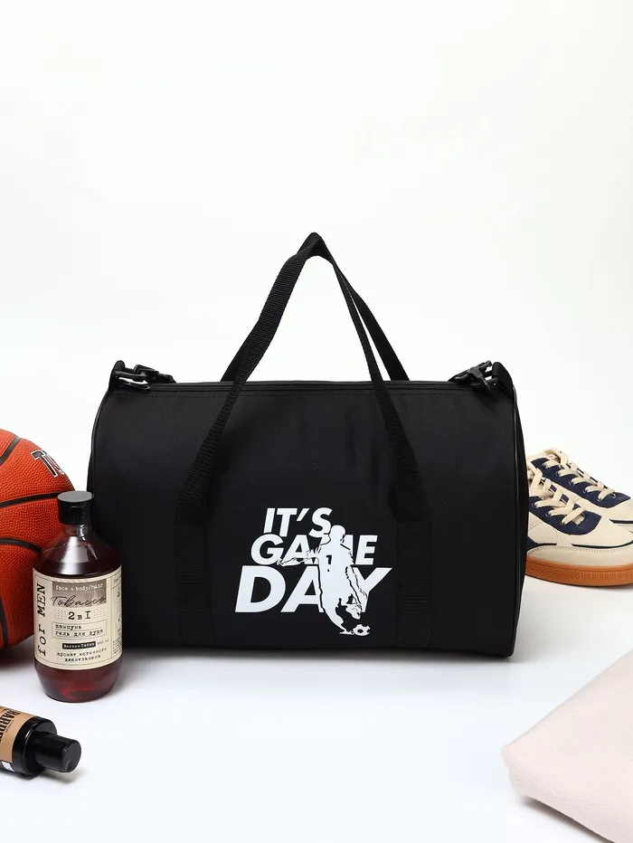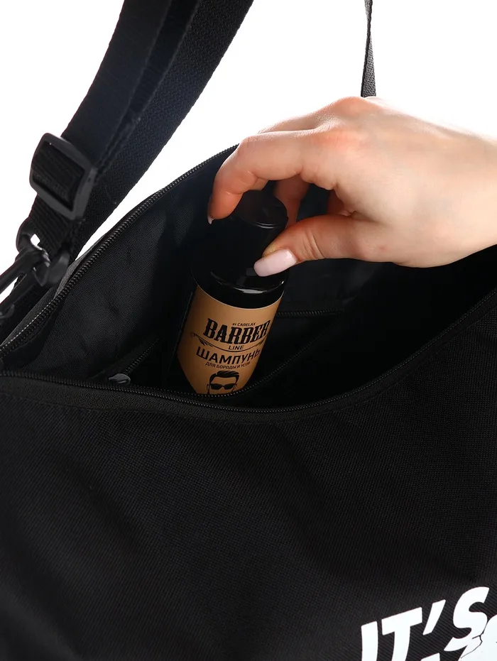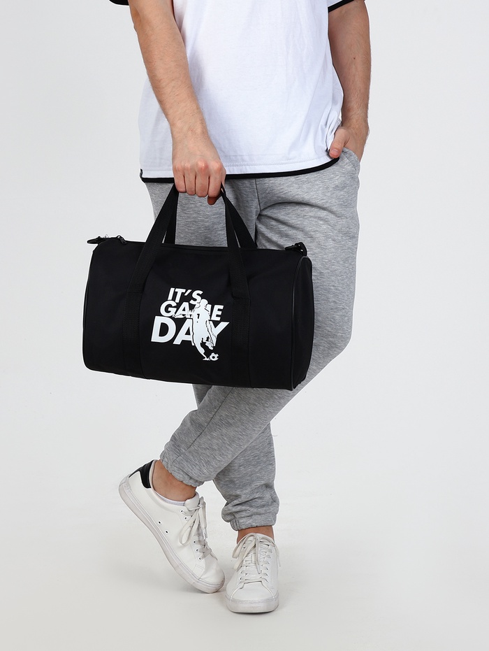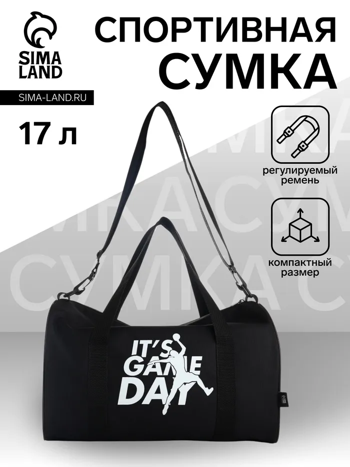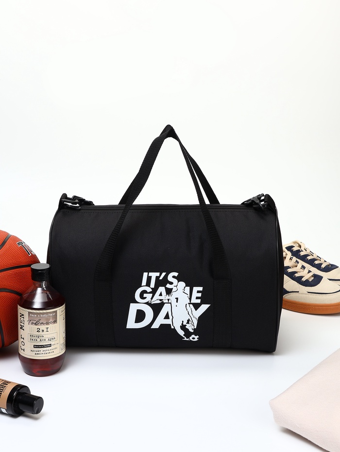 Сумка спортивная на молнии TEXTURA, с подкладкой, длинный ремень, с принтом, маленький размер, чёрная — Характеристики