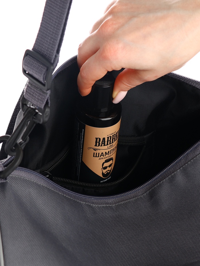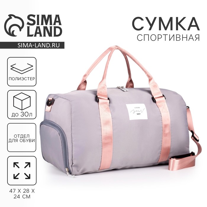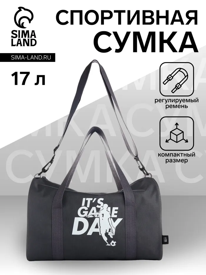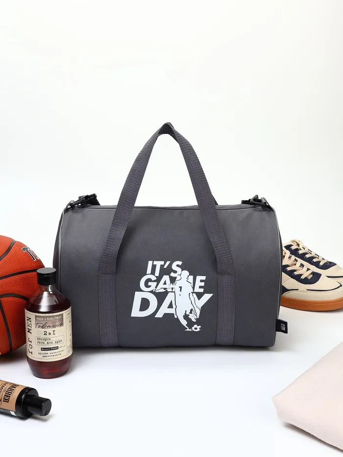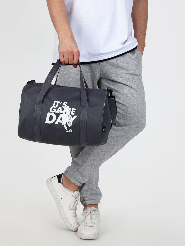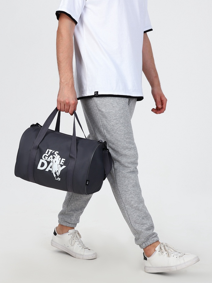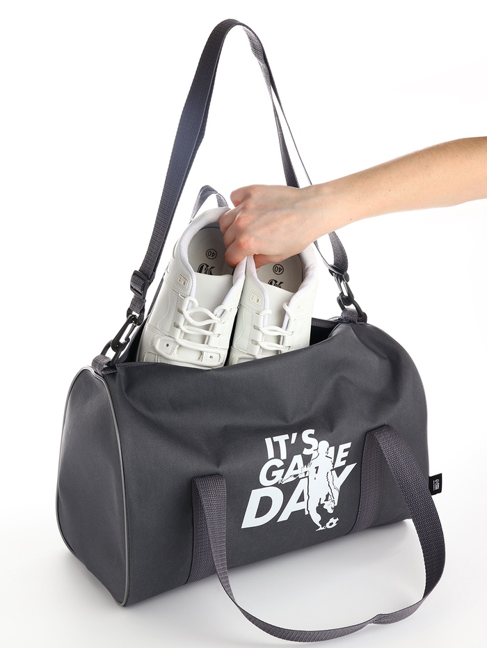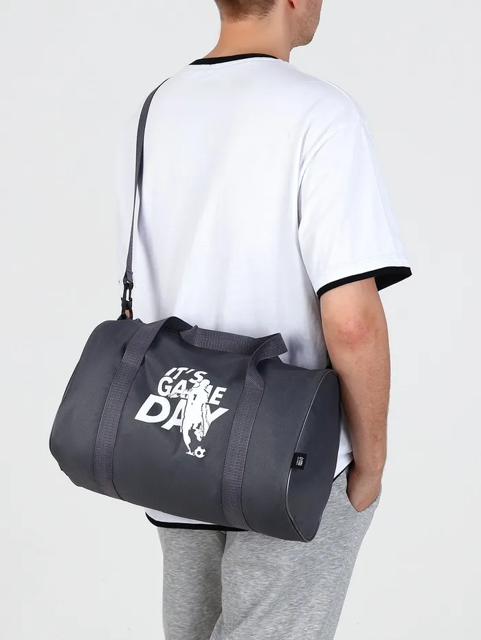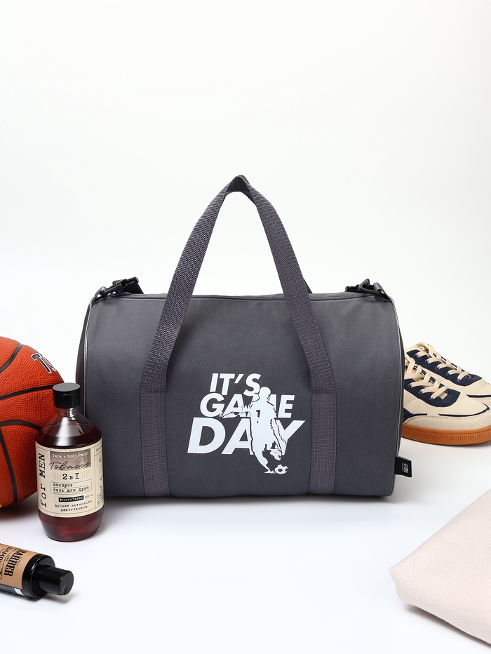 Сумка спортивная на молнии TEXTURA, с подкладкой, длинный ремень, с принтом, маленький размер, серая — Характеристики