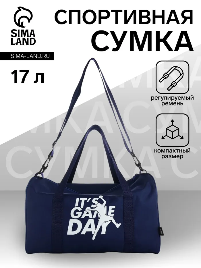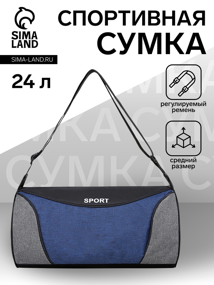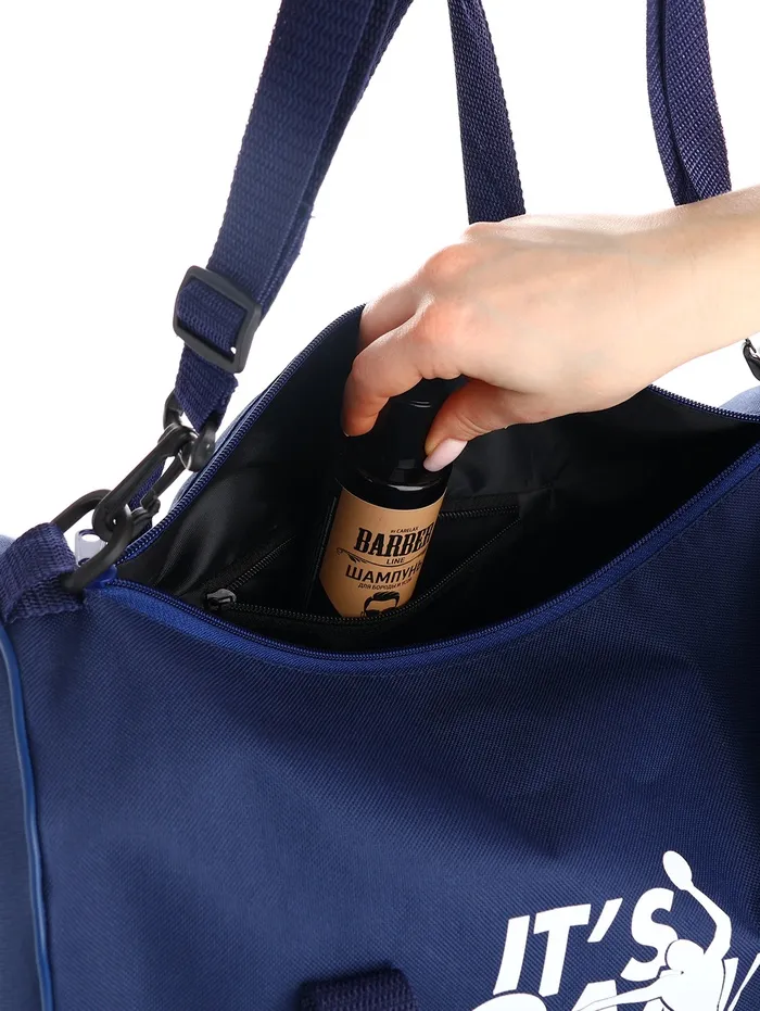 Сумка спортивная на молнии TEXTURA, с подкладкой, с длинным ремнём, маленький размер, синяя — Характеристики
