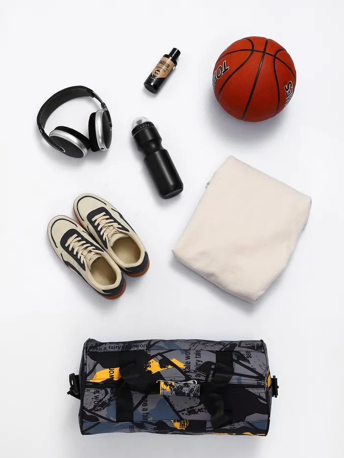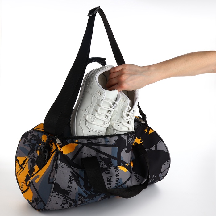 Сумка спортивная на молнии TEXTURA, средний размер, цвет серый/жёлтый — Характеристики