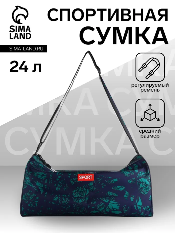Сумка спортивная на молнии TEXTURA, средний размер, цвет синий/зелёный — Характеристики