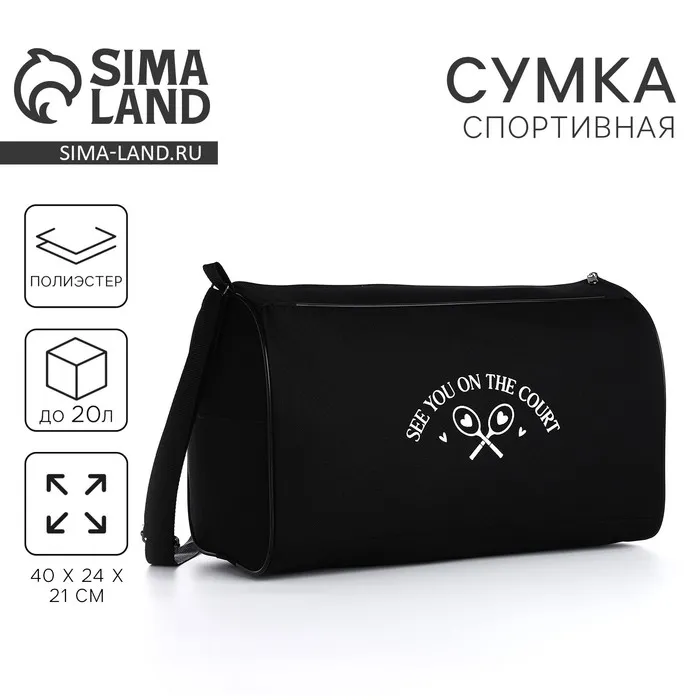 Сумка спортивная «Увидимся на корте», 40×24×21, отдел на молнии, черная — Характеристики