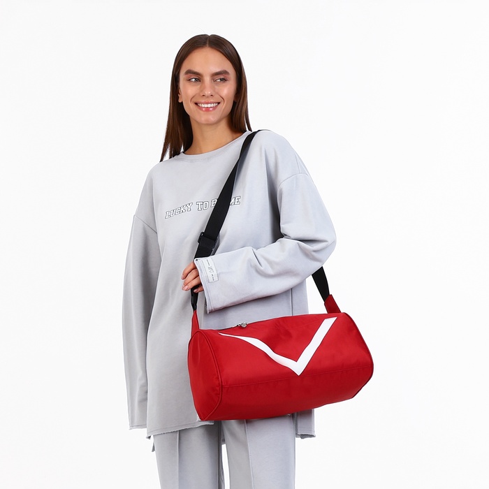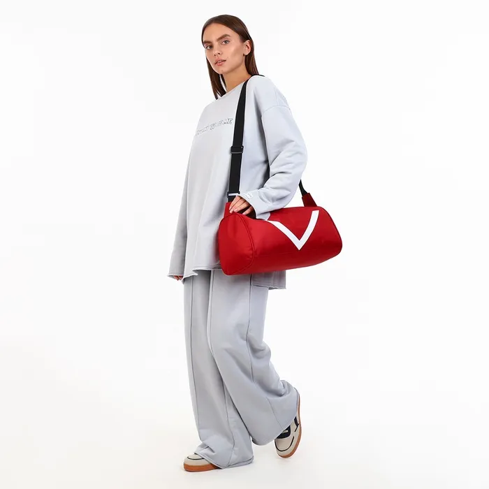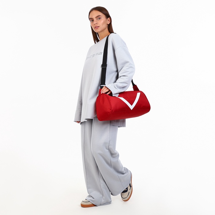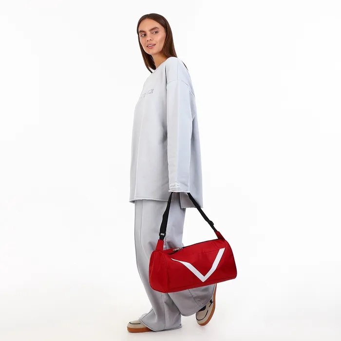 Сумка спортивная женская на молнии, боковой карман/сетка, регулируемый ремень, средний размер, цвет красный — Характеристики