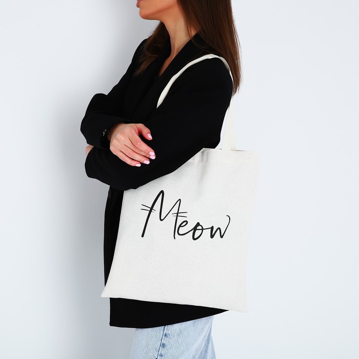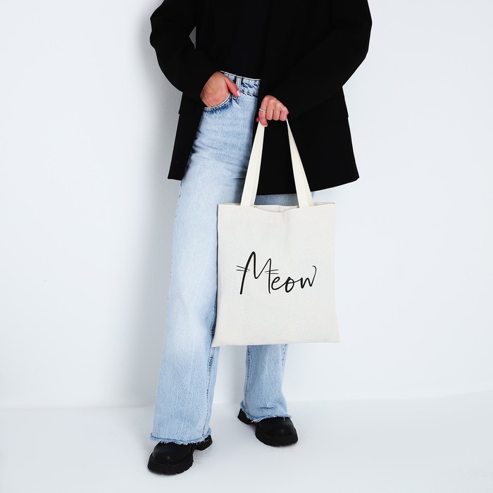 Сумка текстильная Meow, 35×0.5×40, отдел без молнии, без подклада, бежевый — Характеристики