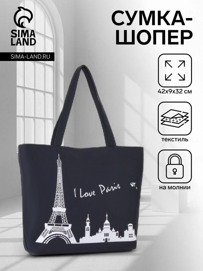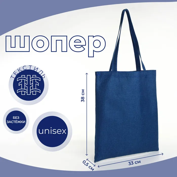 Сумка текстильная шопер без застёжки, 33×0.5×38 см, синяя — Характеристики