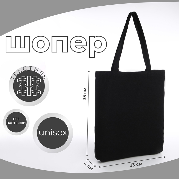 Сумка текстильная шопер без застёжки, 35×0.5×40 см, бежевый — Характеристики