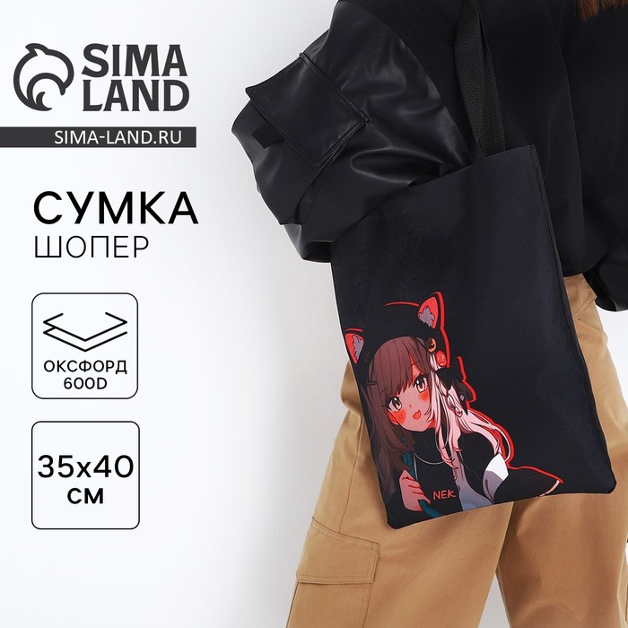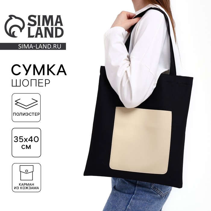 Сумка текстильная шопер без застёжки, 35×0.5×40 см, чёрная — Характеристики