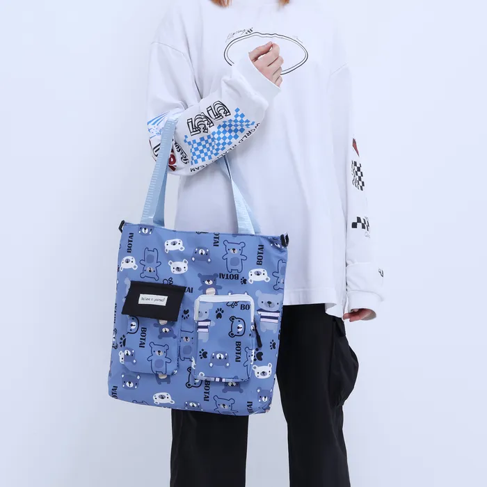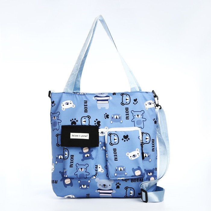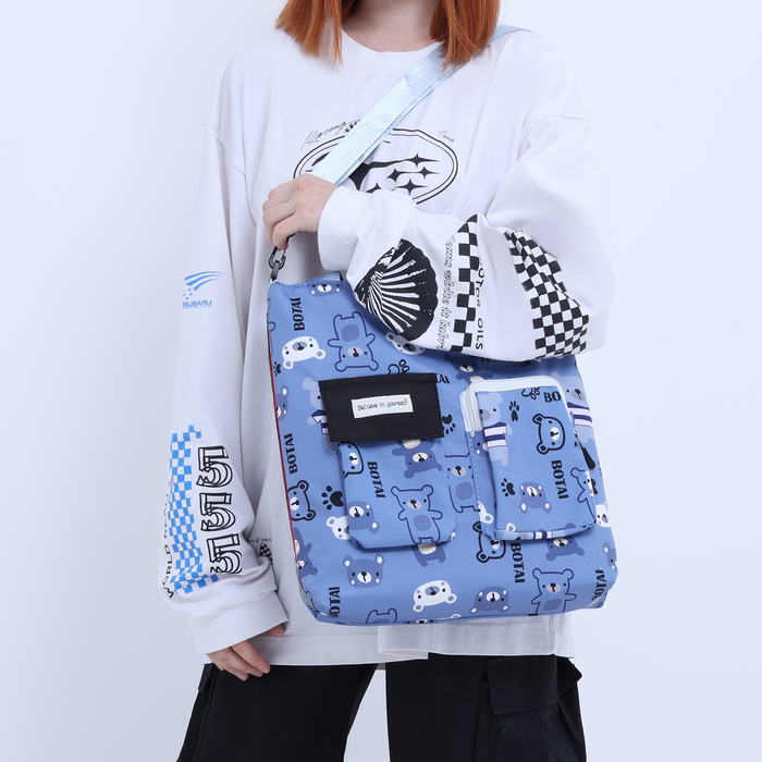 Сумка текстильная шопер на молнии, 35×8×31 см, синяя — Характеристики