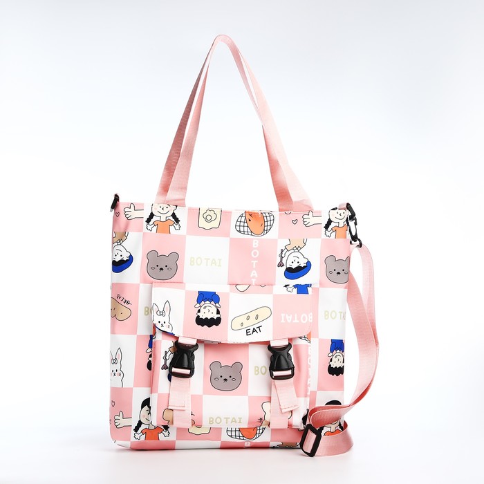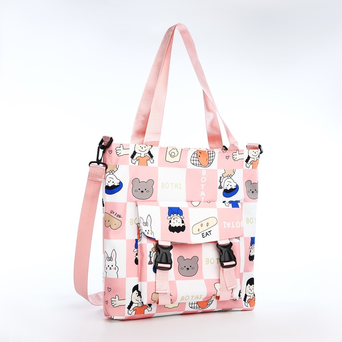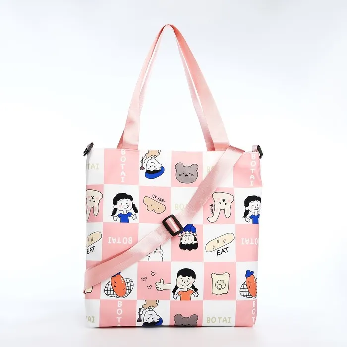 Сумка текстильная шопер на молнии, 35×8×33 см, розовая — Характеристики
