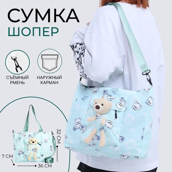 Сумка текстильная шопер на молнии, 36×7×32 см, зелёная — Характеристики