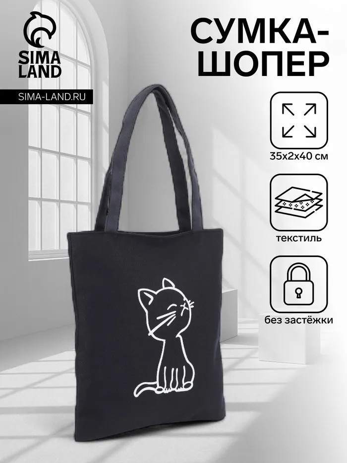 Сумка текстильная шопер на молнии, с подкладкой, 35×2×40 см, чёрная — Характеристики