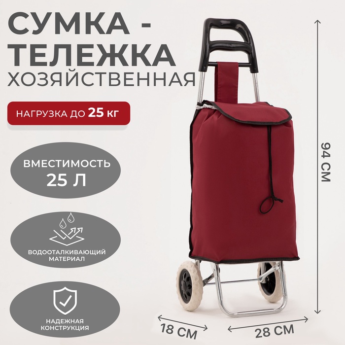 Сумка-тележка хозяйственная на шнуре, 28×18×94 см, бордовая — Характеристики