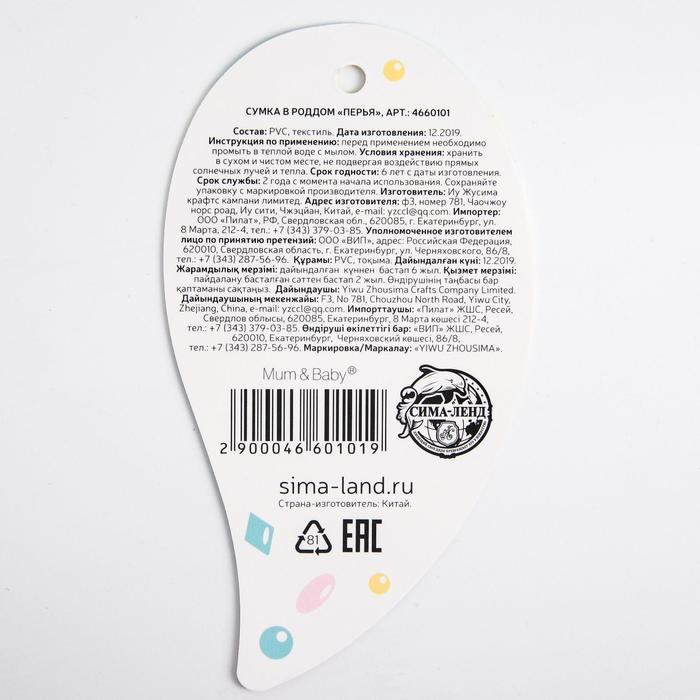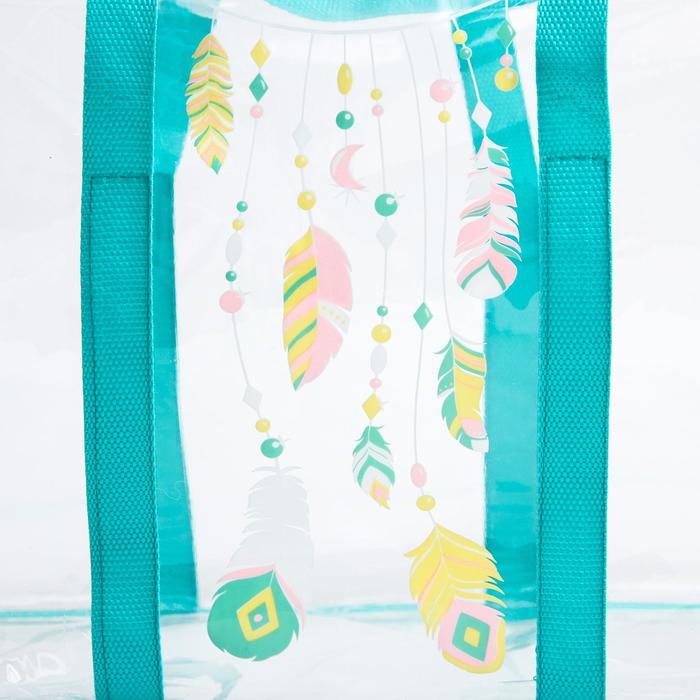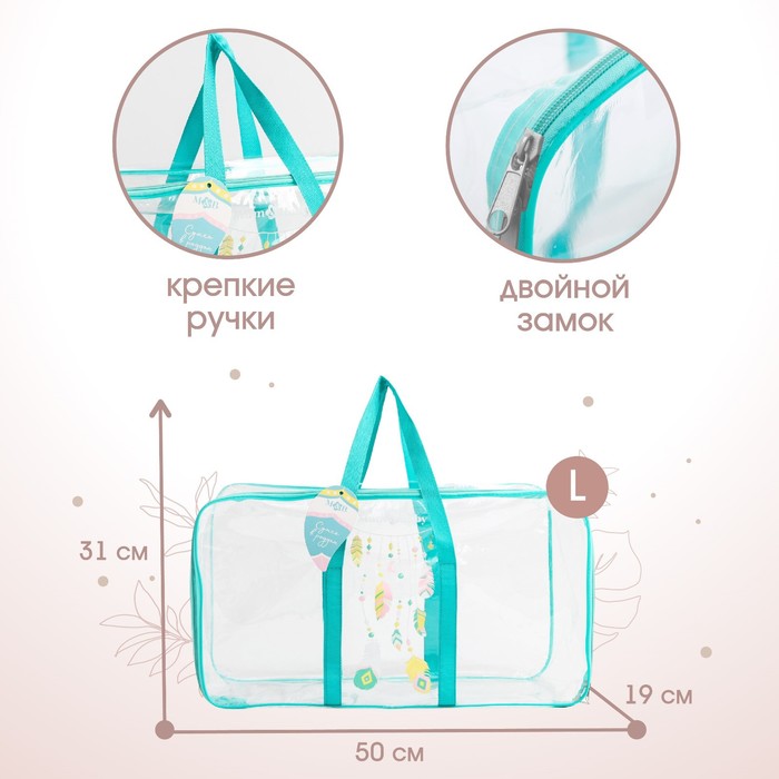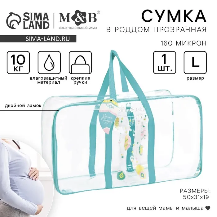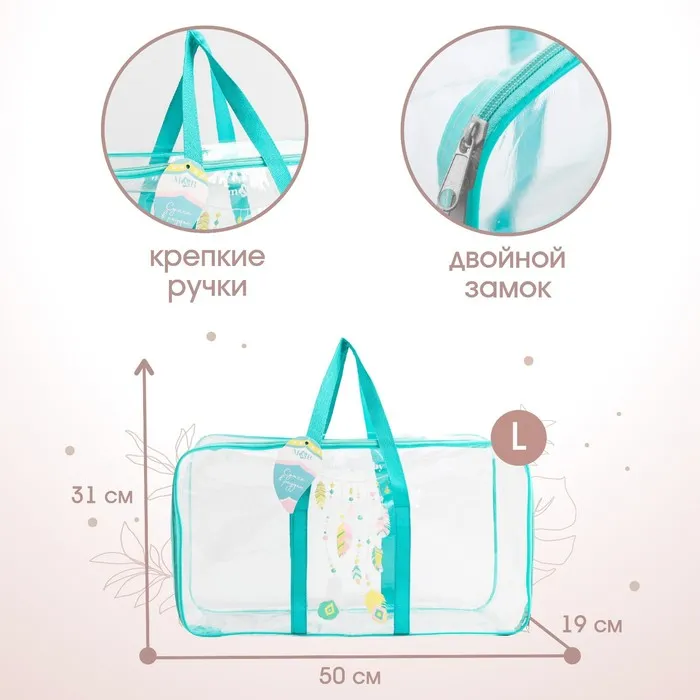 Сумка в роддом M&B «Перья», размер 50х31 см, до 10 кг., прозрачный/бирюзовый — Характеристики