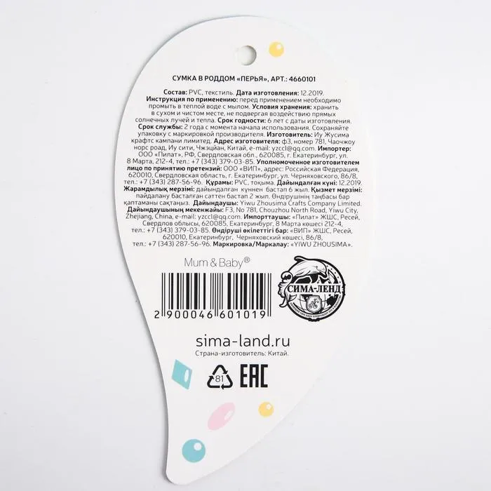 Сумка в роддом выполнена из прозрачного и легко моющегося материала, благодаря этому содержимое сумки будет легко найти.