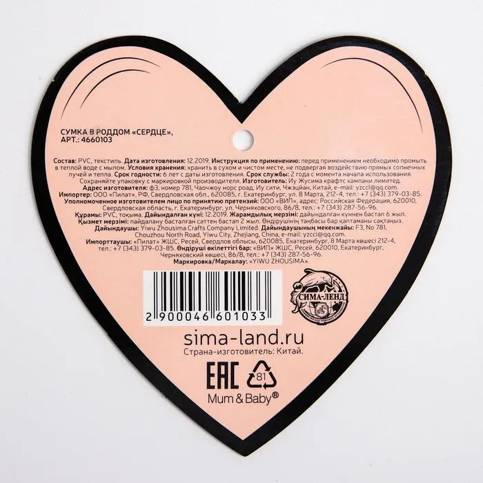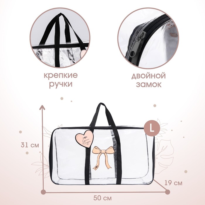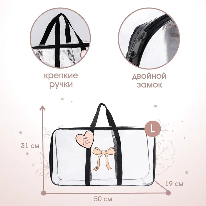 Сумка в роддом M&B «Сердце», размер 50х31 см, до 10 кг., прозрачный/черный — Характеристики