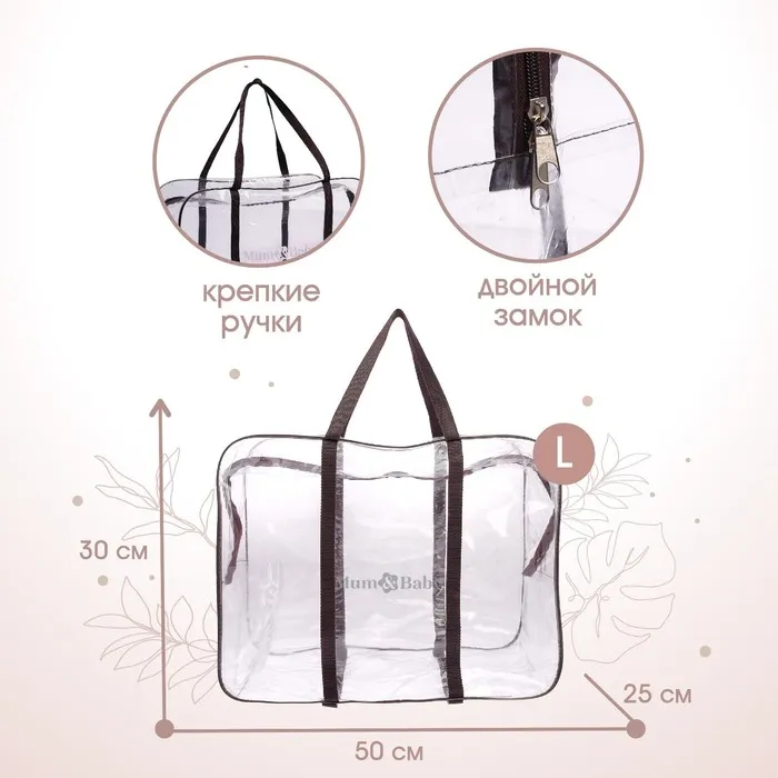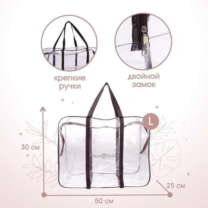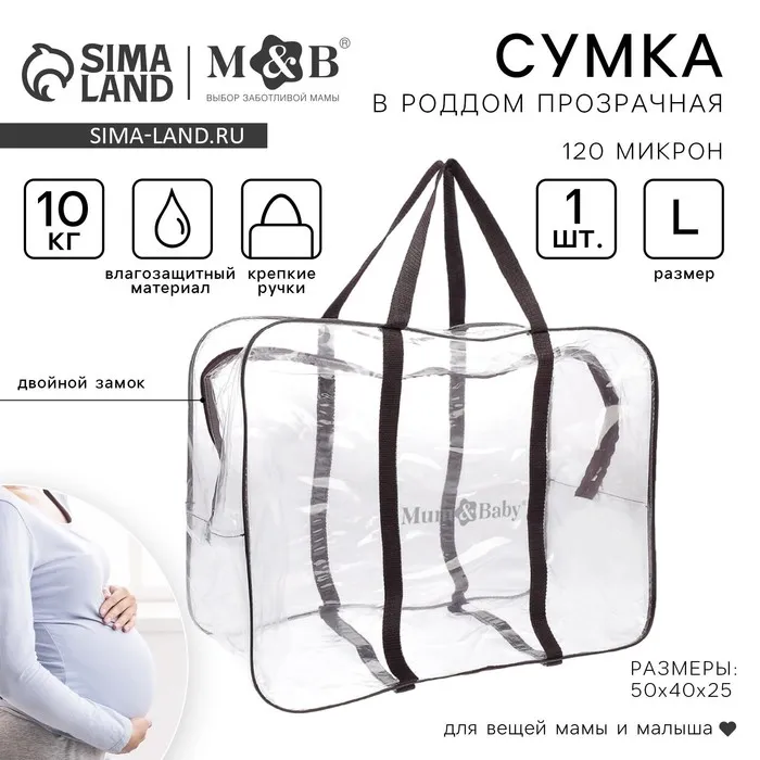 Сумка в роддом, размер 40х50х25 см, карман сбоку, цвет прозрачный/черный, Mum&Baby — Характеристики