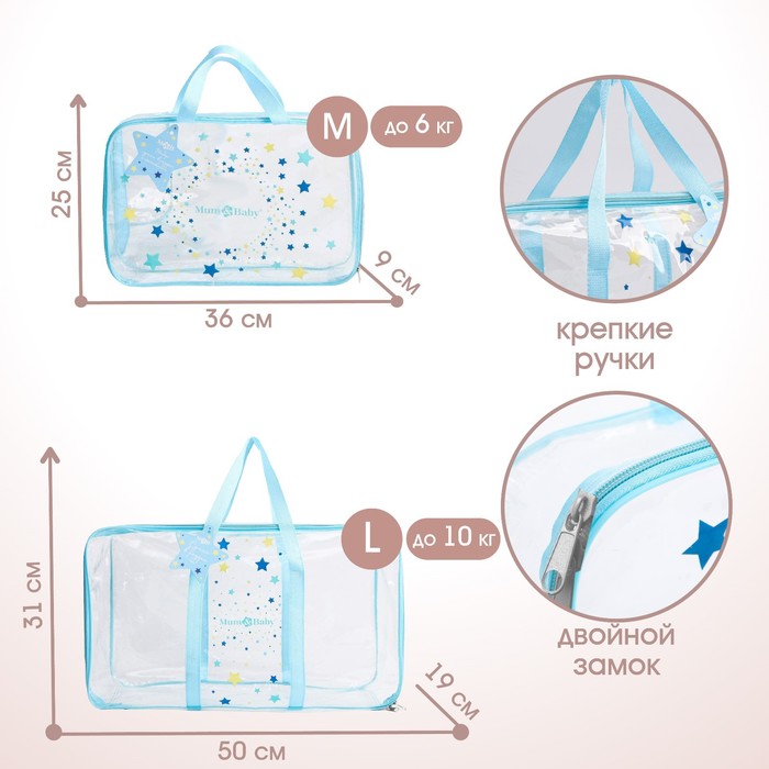 Сумка в роддом с косметичкой «Звёзды», 50×31/36×25, набор 2 шт. — Характеристики