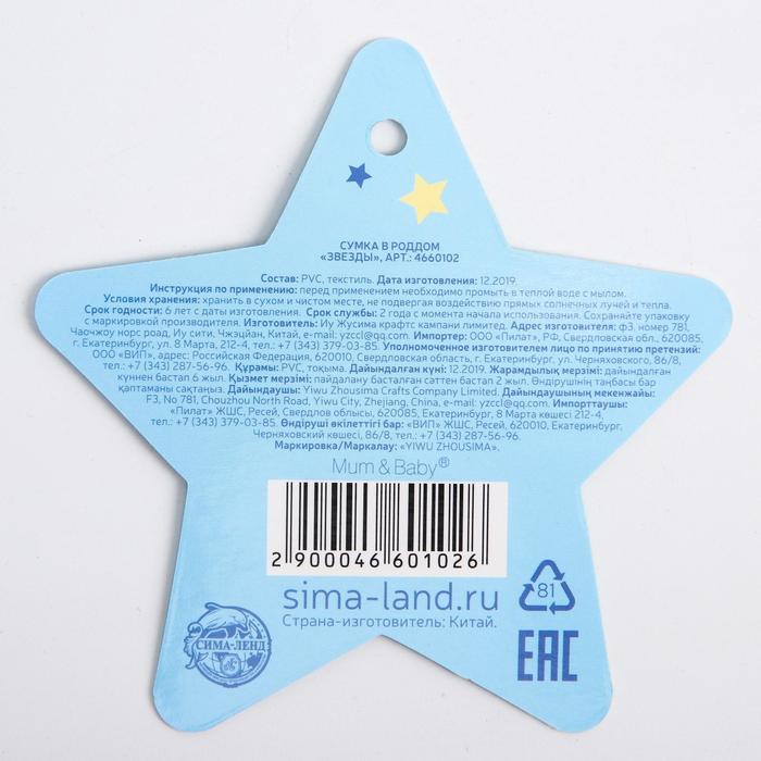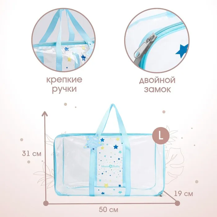 Сумка в роддом «Звёзды», размер 50×31 см, до 10 кг, голубой — Характеристики