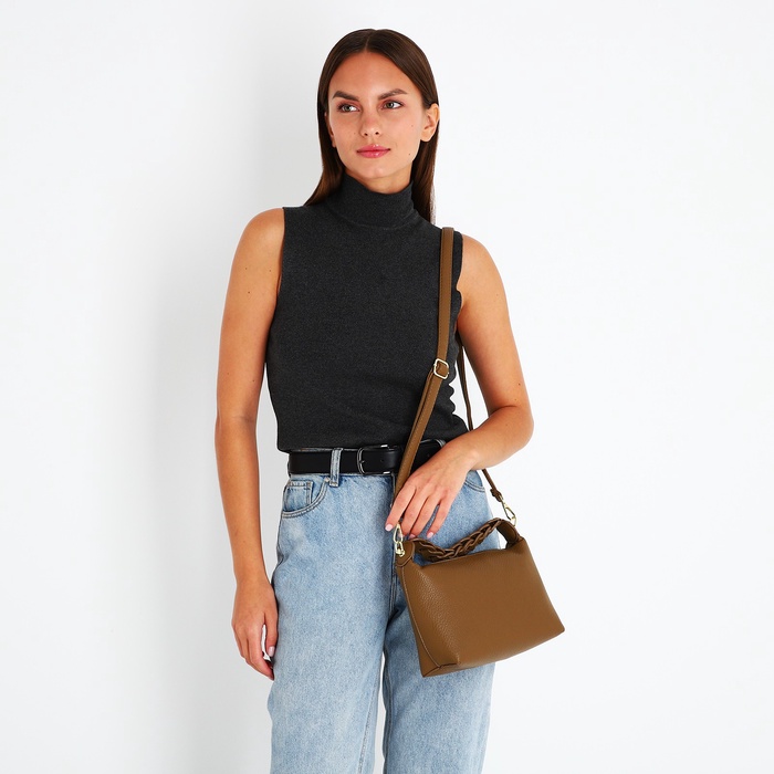 Сумка женская багет на молнии, 22×9×15 см, коричневая — Характеристики