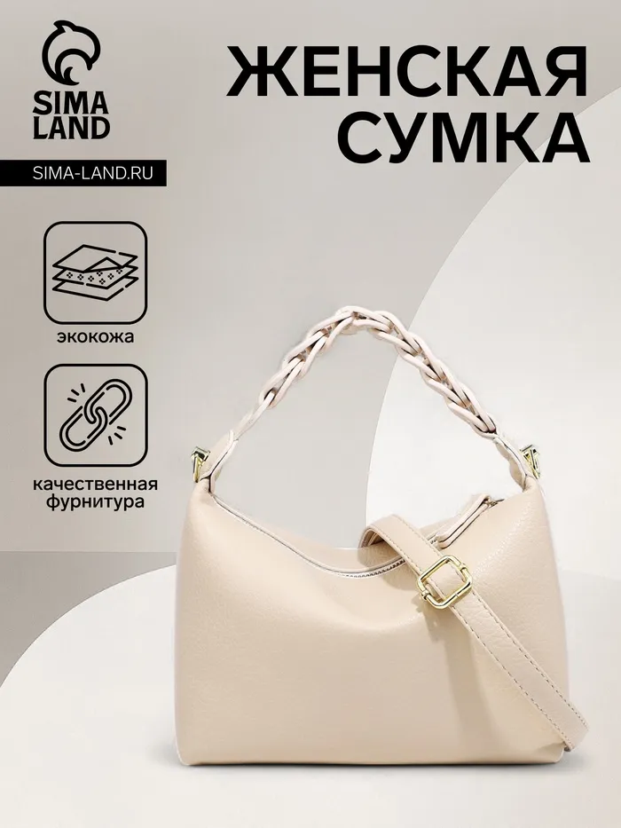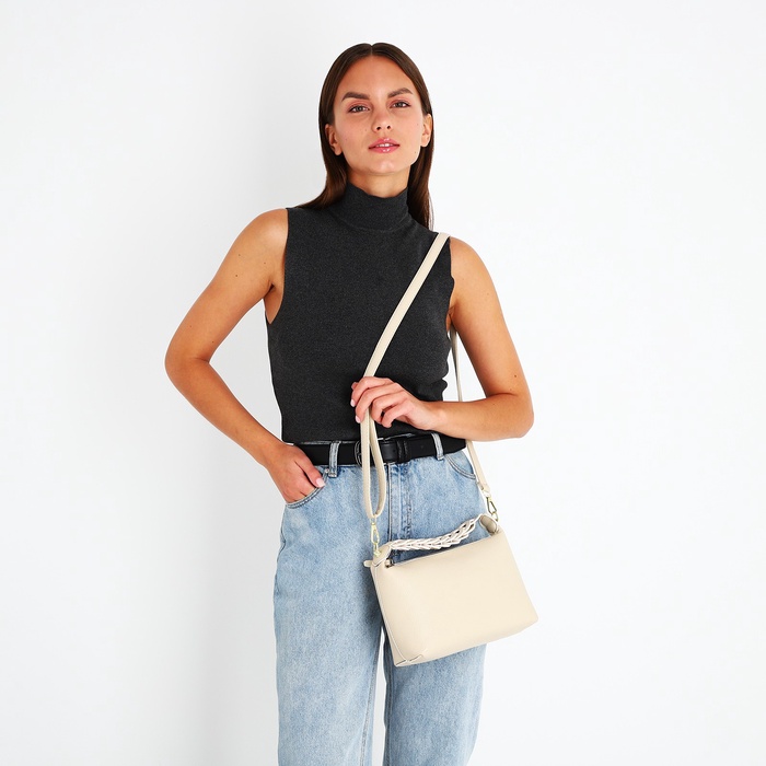 Сумка женская багет на молнии, 22×9×15 см, молочная — Характеристики