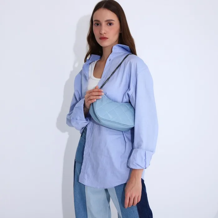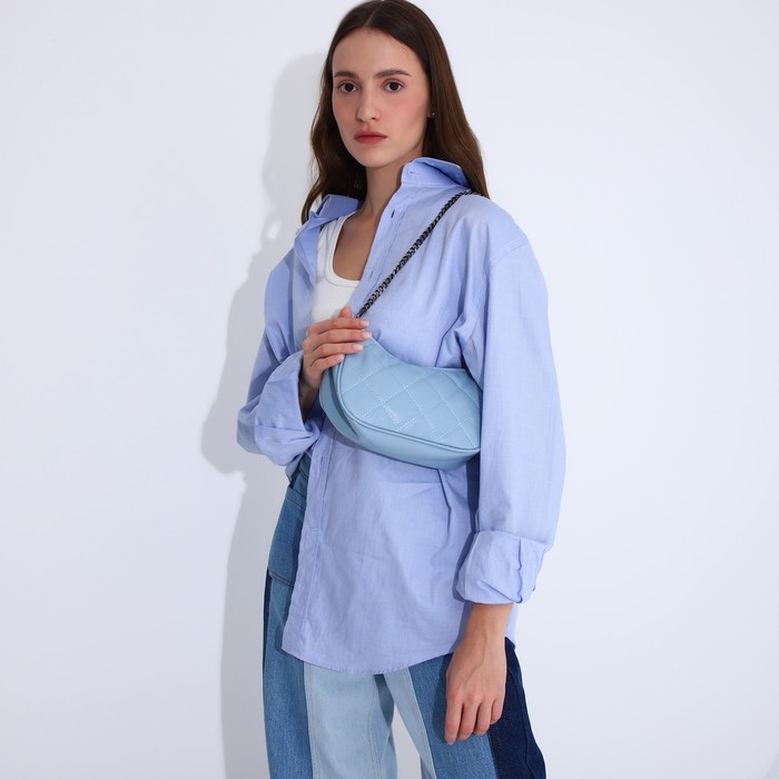 Сумка женская багет на молнии, 23×8×14 см, голубая — Характеристики