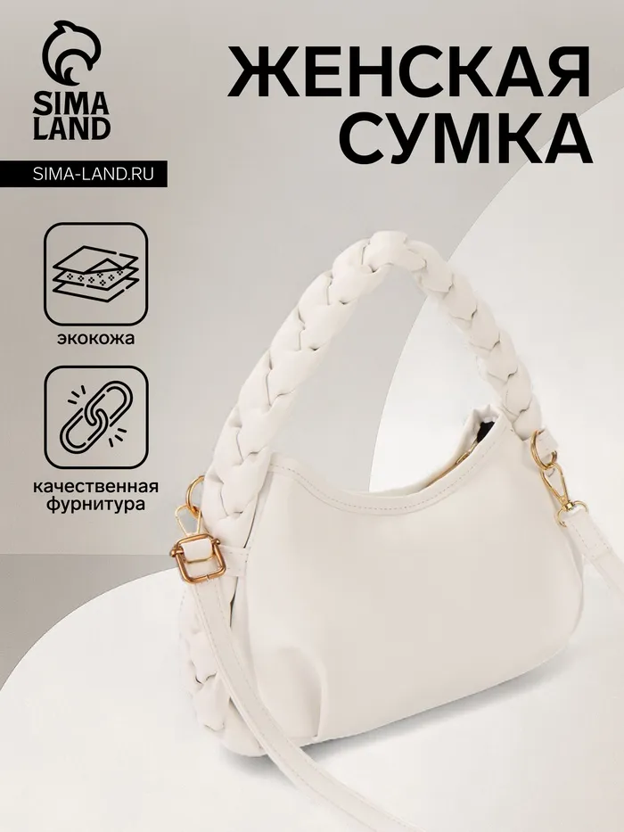 Сумка женская багет на молнии, 24×6×15.5 см, белая — Характеристики