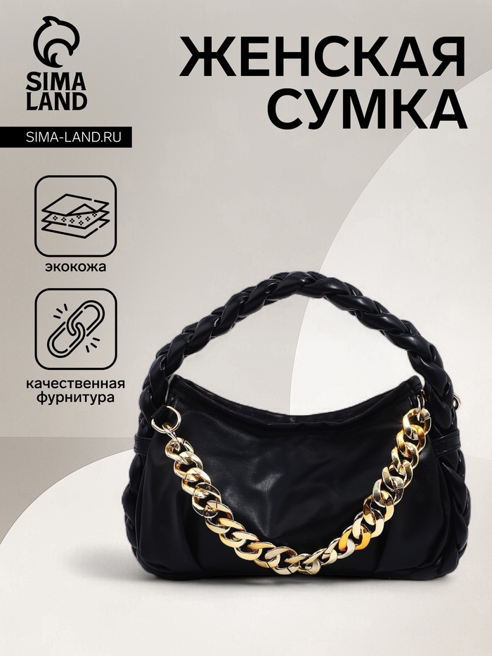 Сумка женская багет на молнии, 24×6×15.5 см, чёрная — Характеристики