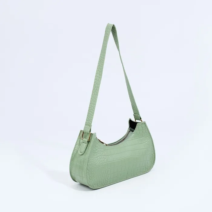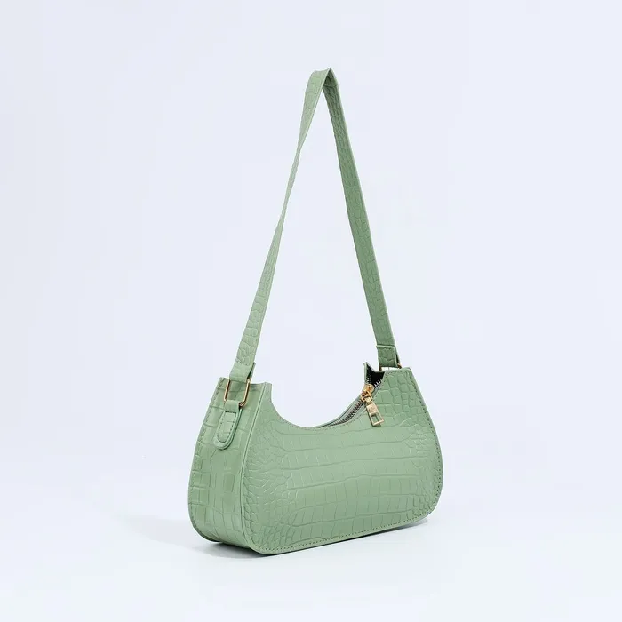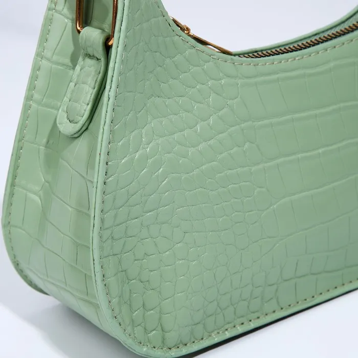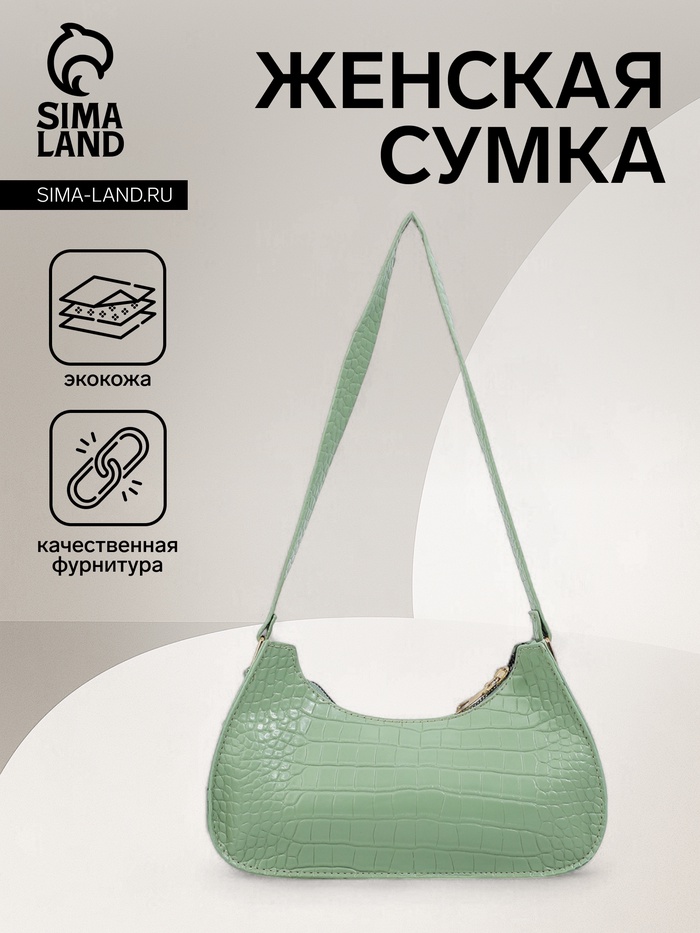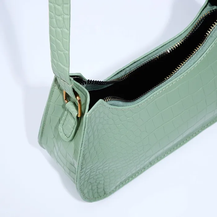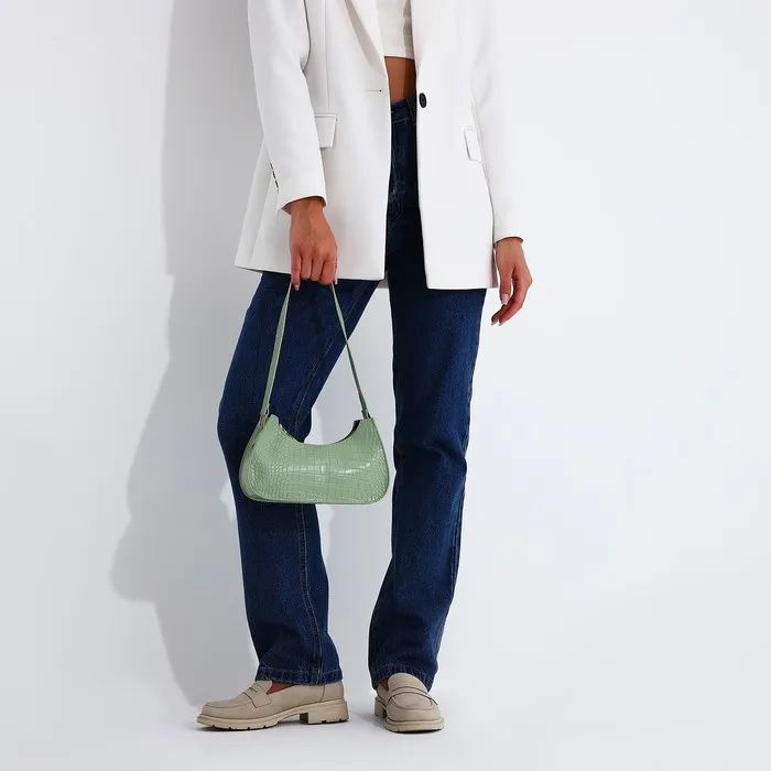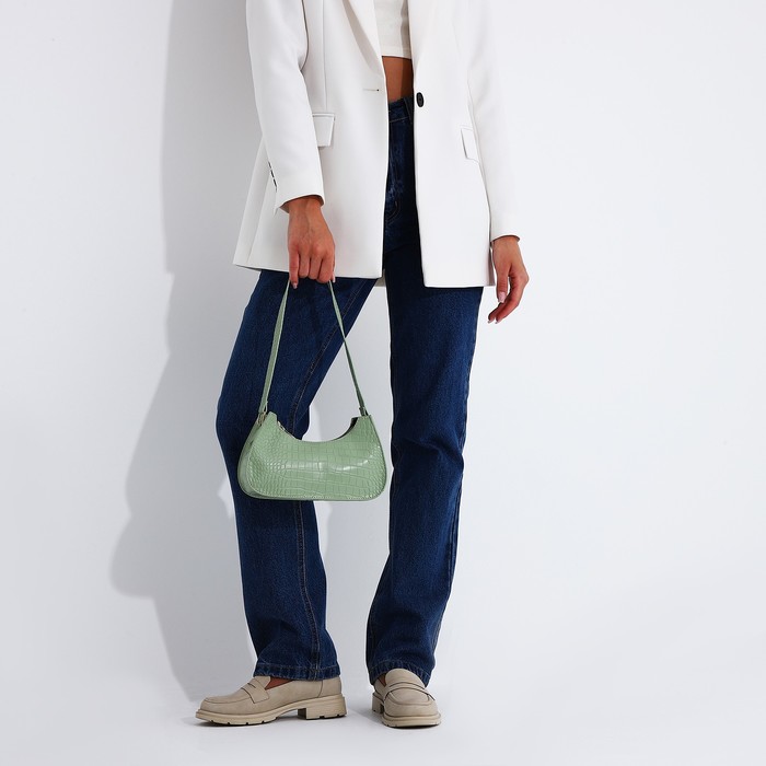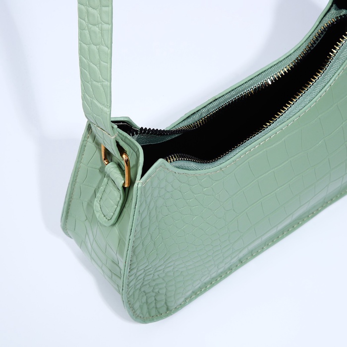 Сумка женская багет на молнии, 24×7.5×10 см, зелёная — Характеристики