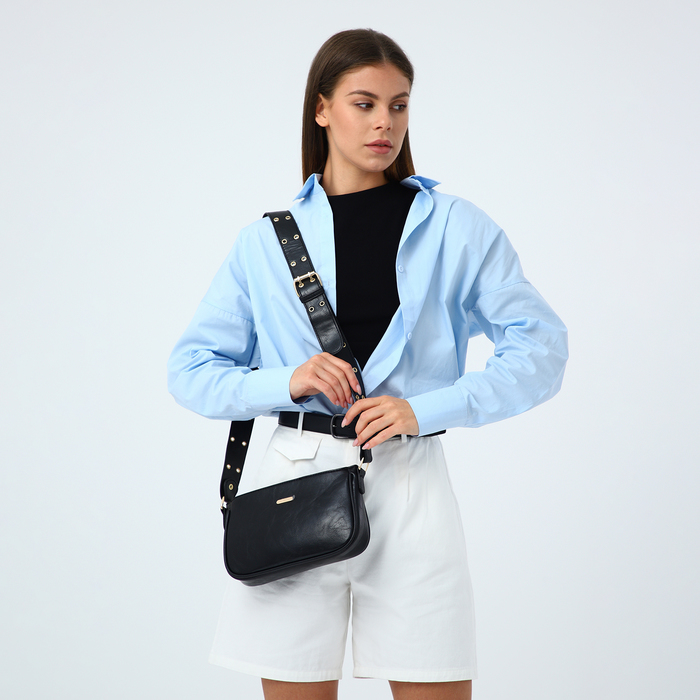 Сумка женская багет на молнии, 25×5×15 см, чёрная — Характеристики