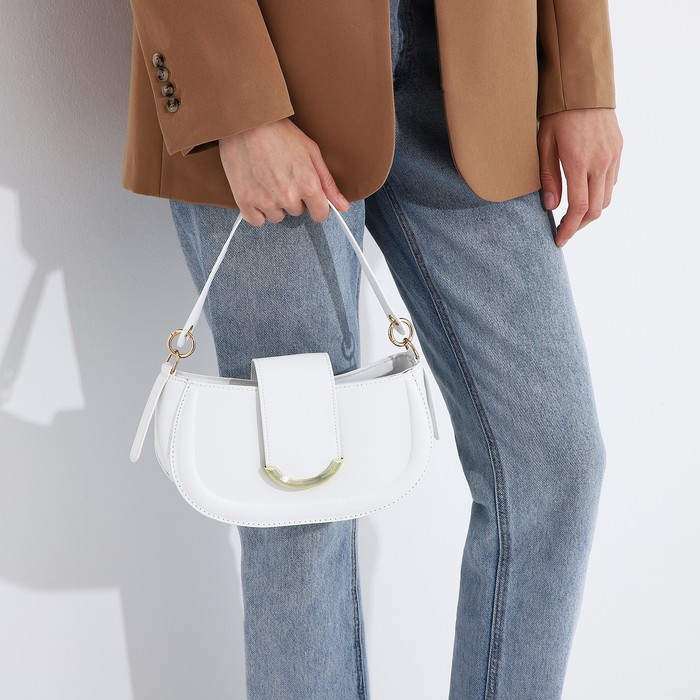 Сумка женская багет на молнии, 25×6×13 см, белая — Характеристики