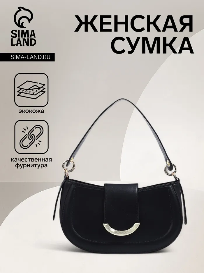 Сумка женская багет на молнии, 25×6×13 см, чёрная — Характеристики