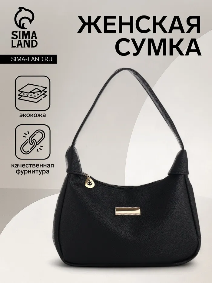 Сумка женская багет на молнии, 25×7×13.5 см, чёрная — Характеристики