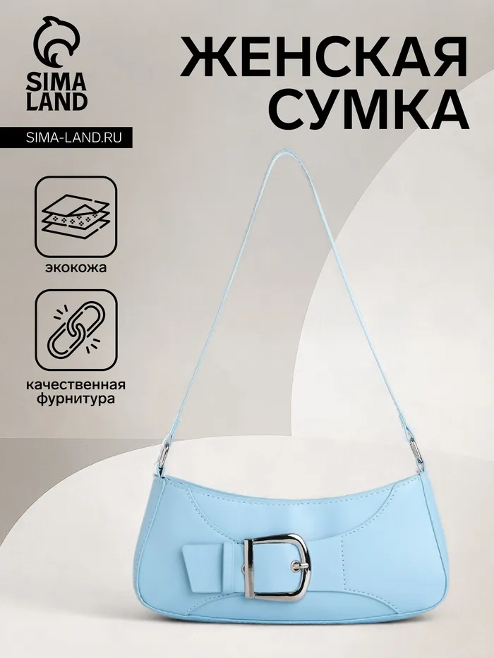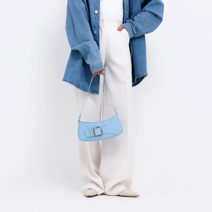 Сумка женская багет на молнии, 26×5×10.5 см, голубая — Характеристики