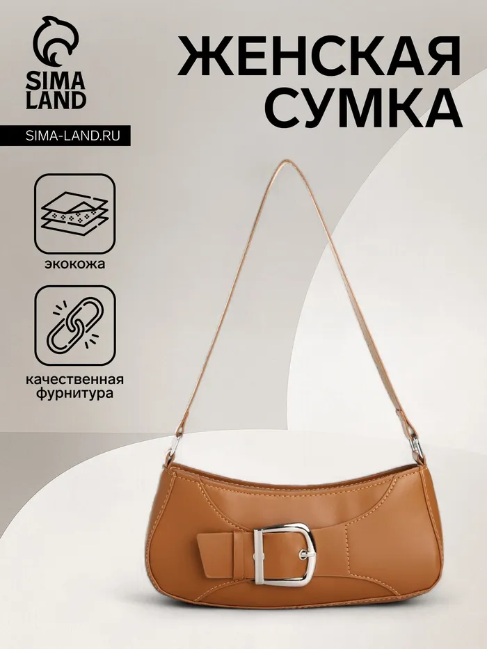 Сумка женская багет на молнии, 26×5×10.5 см, коричневая — Характеристики