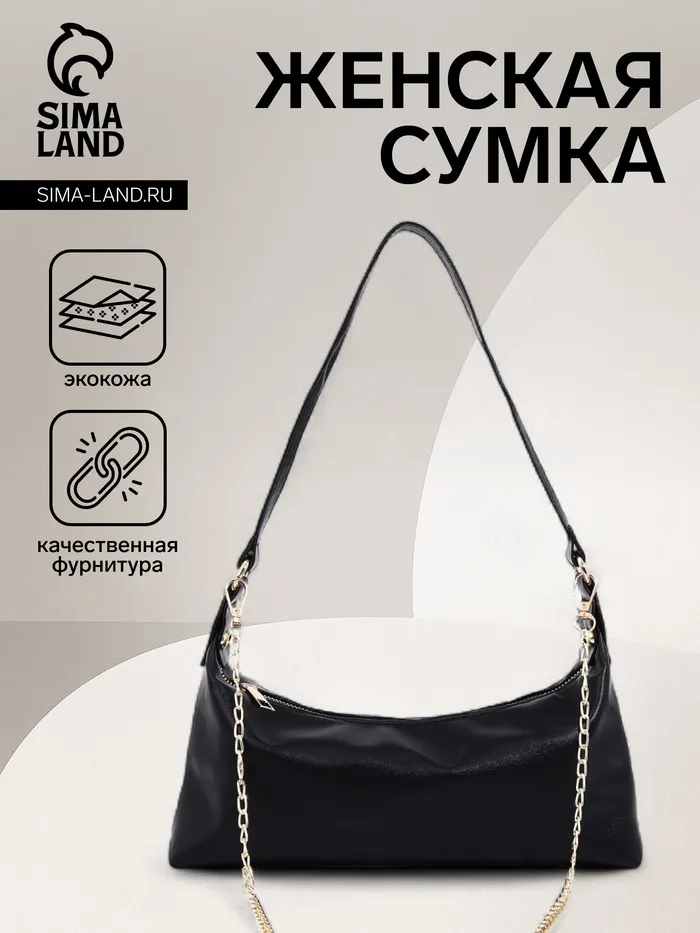 Сумка женская багет на молнии, 26×8×12 см, чёрная — Характеристики