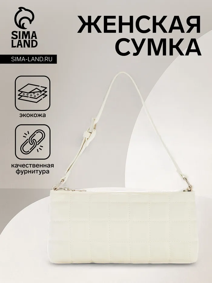 Сумка женская багет на молнии, 27×5×13 см, белая — Характеристики