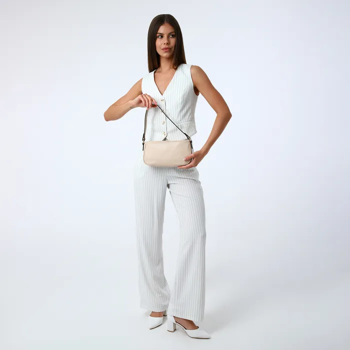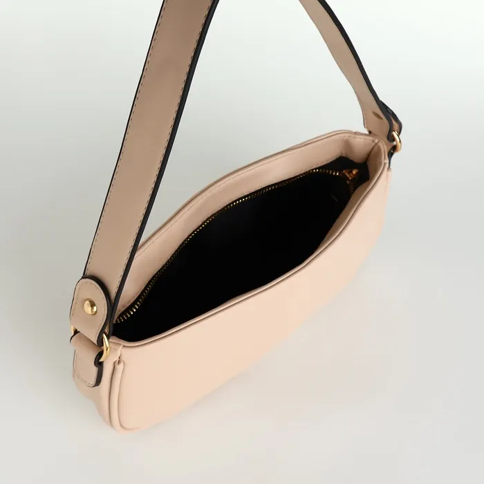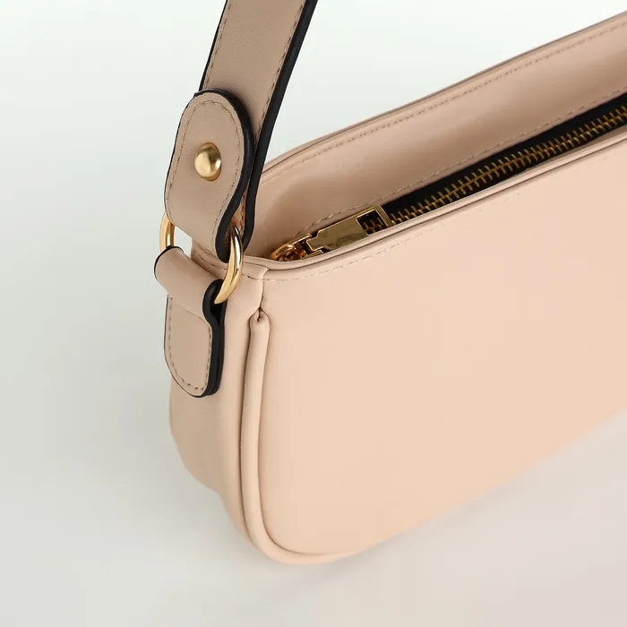 Сумка женская багет на молнии, 27×5×13 см, однотонная, бежевая — Характеристики