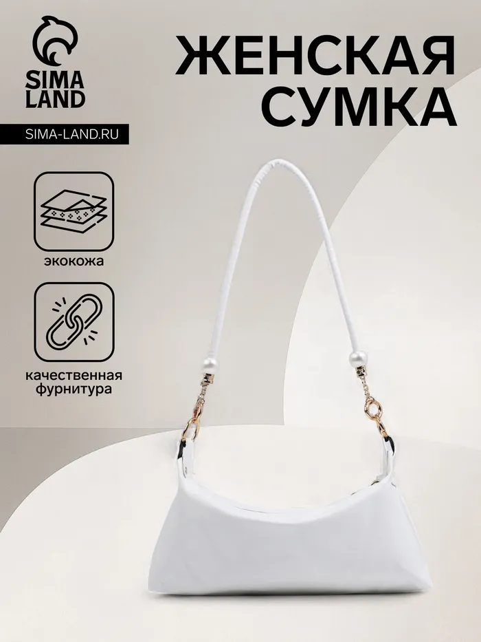 Сумка женская багет на молнии, 27×7.5×13 см, белая — Характеристики