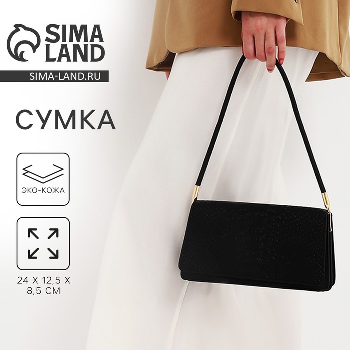 Сумка женская багет на молнии, 28×3.5×18 см, чёрная — Характеристики