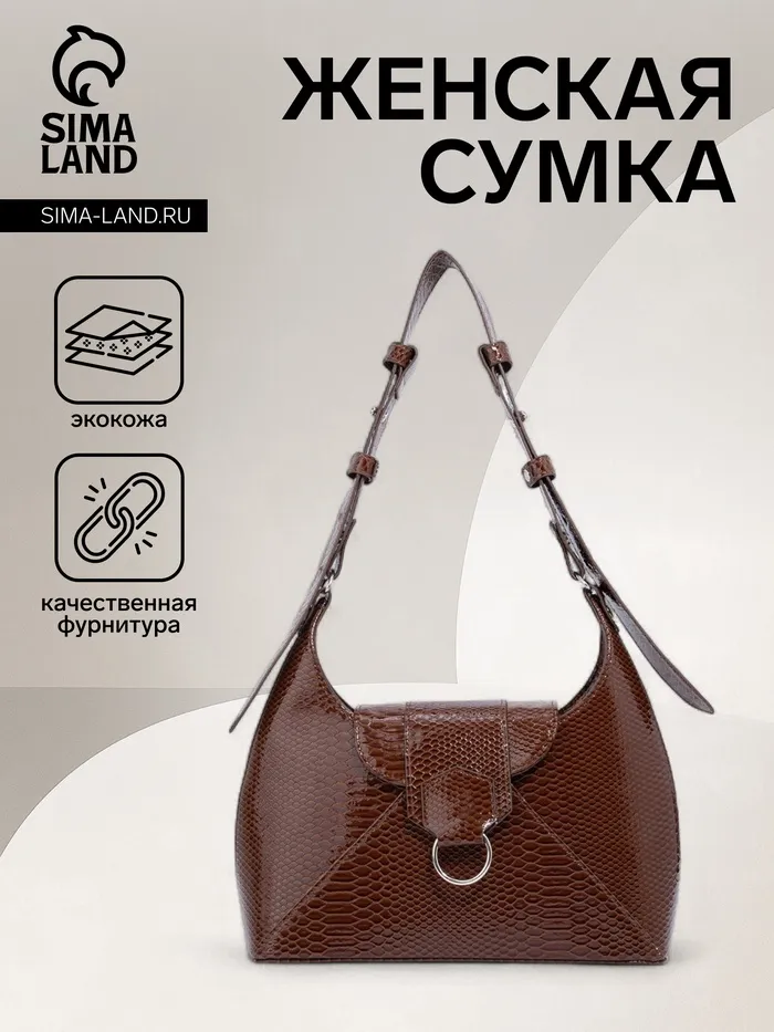 Сумка женская багет на молнии, 28×9×23 см, коричневая — Характеристики