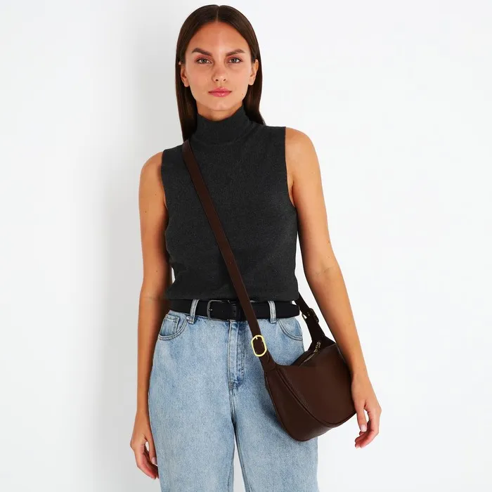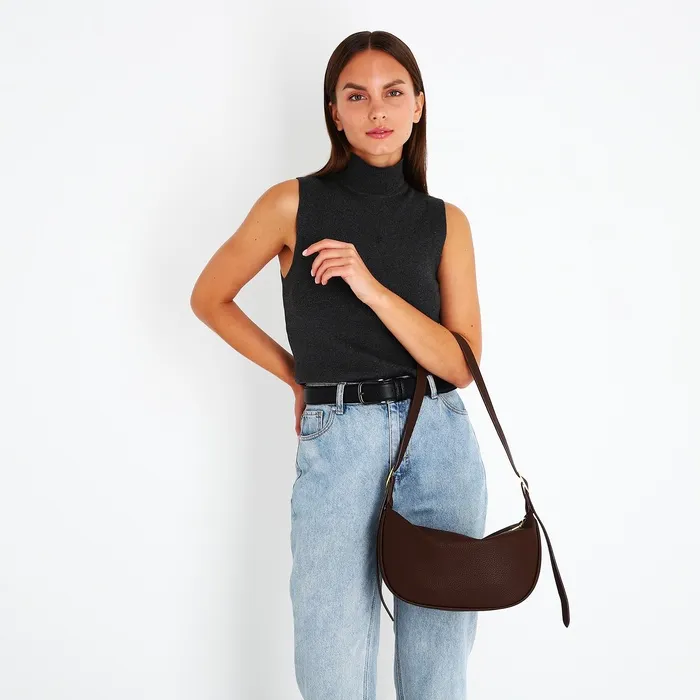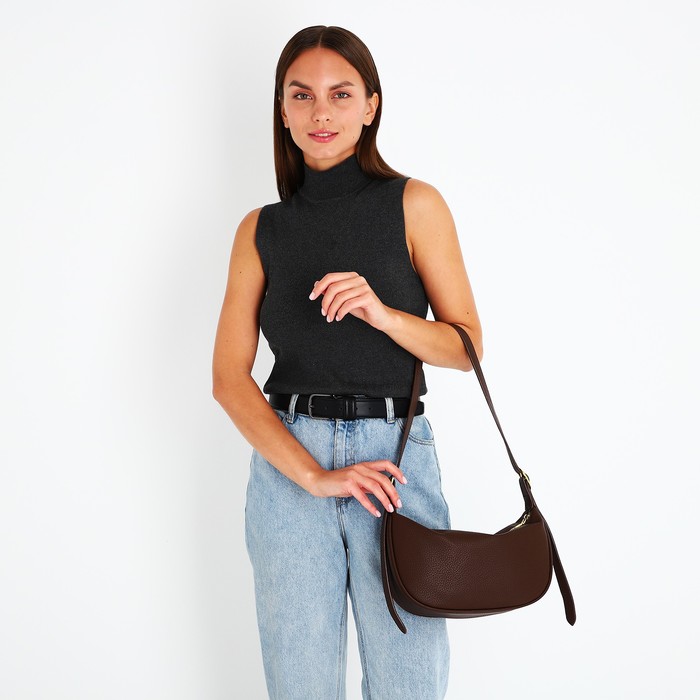 Сумка женская багет на молнии, 29×8×16 см, тёмно-коричневая — Характеристики